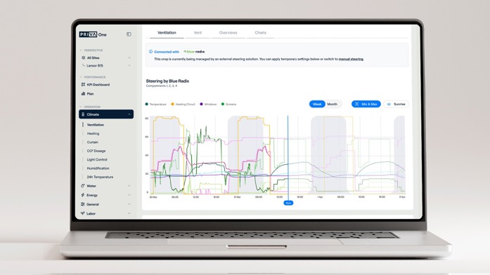 Priva One integriert Daten damit eine unternehmensweite Perspektive möglich wird. Das System, das in diesem Sommer offiziell eingeführt wurde, ist die „ultimative integrierte Lösung für einen vorausschauenden und skalierbaren Anbau“, so die Klimacomputer-Spezialisten aus De Lier. CEO Hans Peters fasste es während der GreenTech Amsterdam 2024 so zusammen: